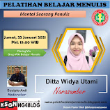 Terlepas dari itu saya akan membuat selembar tulisan tentang kegiatan saya mengikuti diklat yang menulis pada pertemuan ke - 8. Diklat pertemuan ke - 8 dilaksanakan pada tanggal 20 Januari 2021 seperti biasa acara dimulai pada pukul 19.00. Diklat diawali oleh bapak kita yang paling cepat bagai kilat dalam menulis Beliau adalah Omjay. Omjay memulai diklat dengan selalu menyemangati saya dan teman - teman saya untuk selalu bersemangat dalam menulis. Semangatnya untuk menulis selalu berkobar - kobar dan semoga saya bisa mengikuti jejak Omjay.