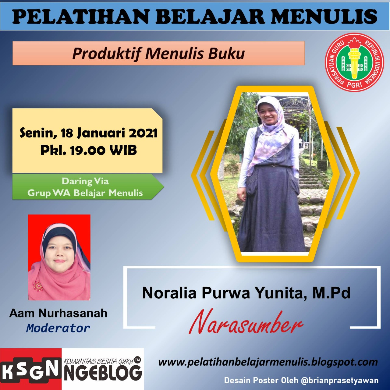 - Menulis setiap hari di blog. Cara inilah yang dilakukan Bu Nora ketika menjadi perserta gelombang 8. Dengan menulis resume dari setiap pertemuan diklat sampai bisa menghasilkan 1 buku dengan judul "Jurus Jitu Menulis dan Berprestasi"